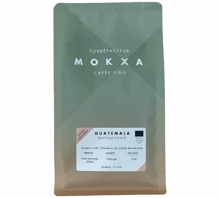 Découvrez le Guatemala Quetzalito des Cafés Mokxa, un 100% Arabica bio produit dans la région du Huehuetenango. Le résultat est une tasse équilibrée et liquoreuse, sur des notes de chocolat au lait. Conditionnement : 250g