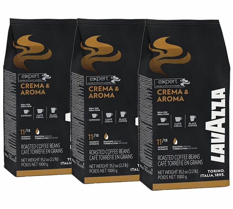Goûtez un café en grain italien de renom, le café Crema & Aroma de Lavazza. D’abord réservée aux professionnels, ce café a ensuite conquis les foyers. Un blend qualifié de fort et composé de 40 % d’arabica (Amérique du Sud), et de 60 % de Robusta (Asie) et des notes épicées. Conditionnement : 3x1kg.