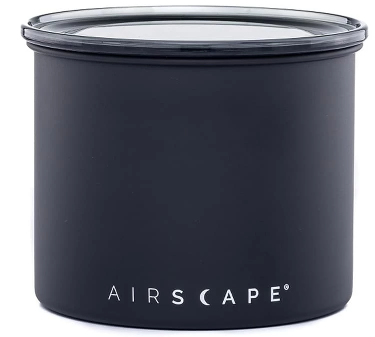 Découvrez la boite de conservation Airscape en acier inoxydable peint noir mat. Idéal pour conserver votre café ou tout autre aliment. Couvercle intérieur breveté Airscape. 100% hermétique et vide d’air pour conserver tous les arômes de votre café. Garanti sans BPA. Contenance : 0,9 L – 250g.