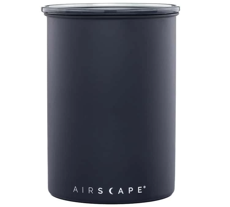 Découvrez la boite de conservation Airscape en acier inoxydable peint noir mat. Idéal pour conserver votre café ou tout autre aliment. Couvercle intérieur breveté Airscape. 100% hermétique et vide d’air pour conserver tous les arômes de votre café. Garanti sans BPA. Contenance : 1,9 L – 500g.