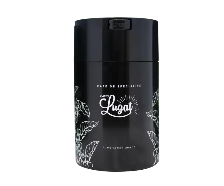 La boîte conservatrice Cafés Lugat est un récipient scellé sous vide , une boîte de stockage pour votre café qui maintient le café au frais jusqu’à 3 fois plus longtemps que les conteneurs classiques. La couleur noire de la boîte permet de conserver bien plus longtemps votre café car il sera à l’abris de la lumière.
