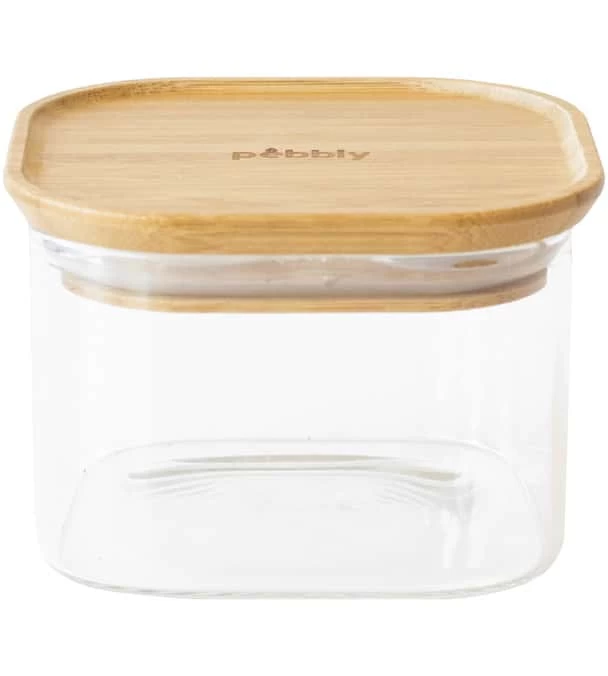 Boite de conservation carrée en verre et bambou 500ml de PEBBLY