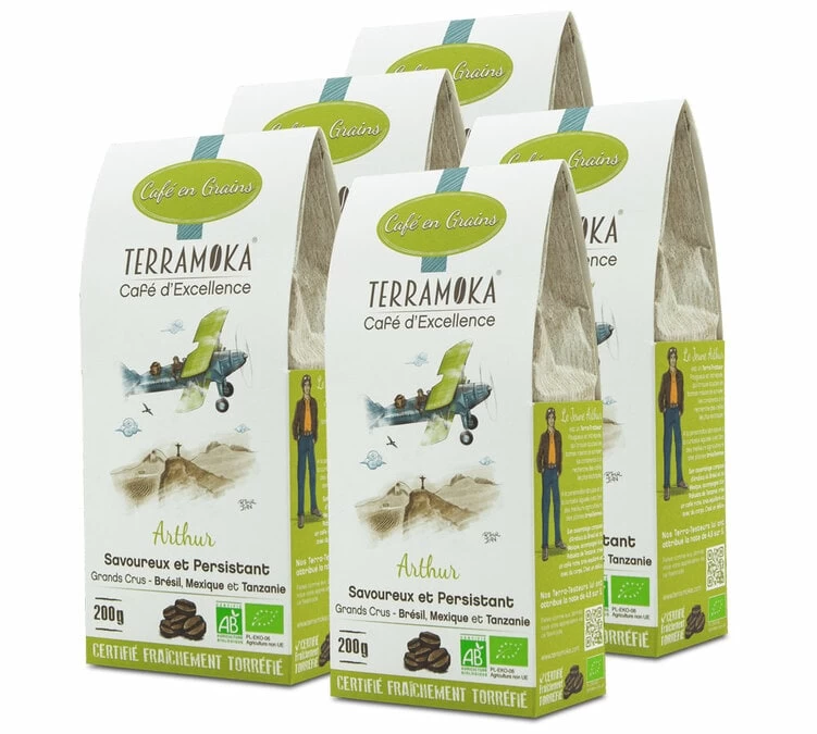 Découvrez Café en grains Bio Arthur Arabica/robusta – 1kg – TERRAMOKA