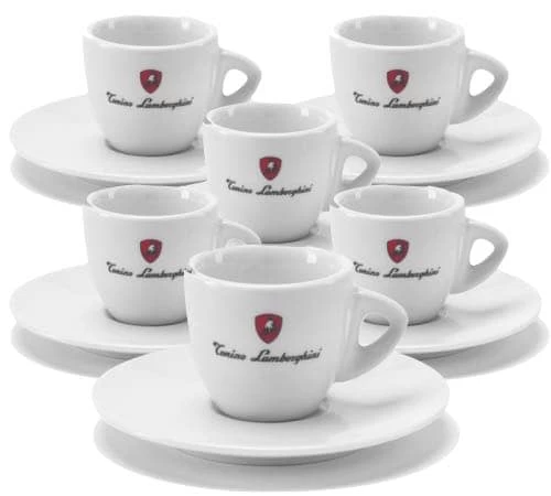 Un lot de 6 magnifiques tasses espresso blanches en porcelaine avec leurs sous-tasses signé Tonino Lamborghini.